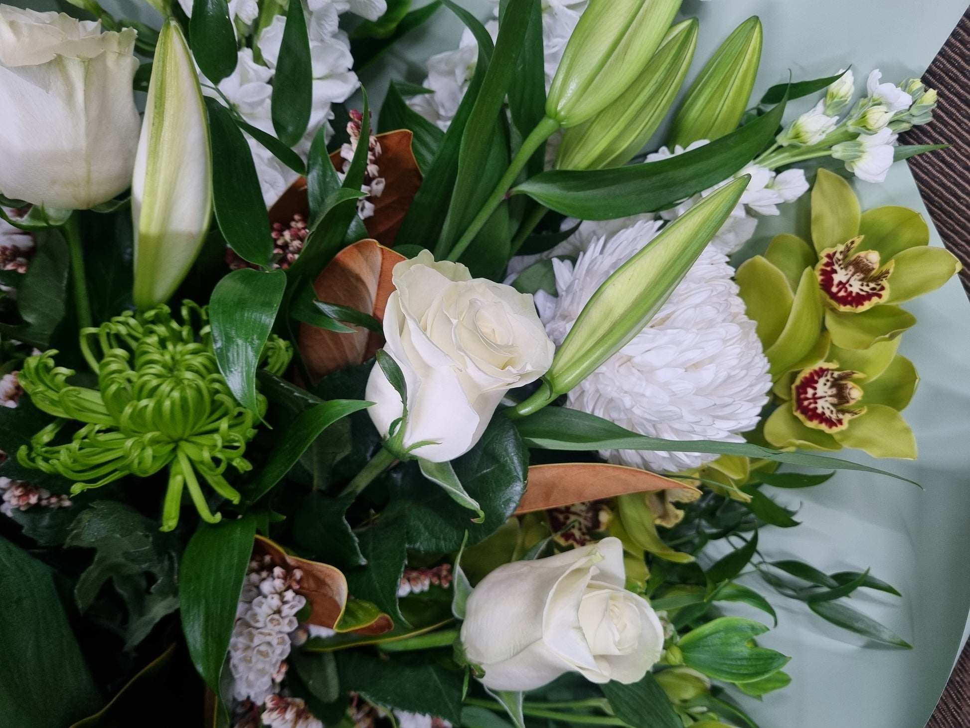 Flowers designed in whites and greens